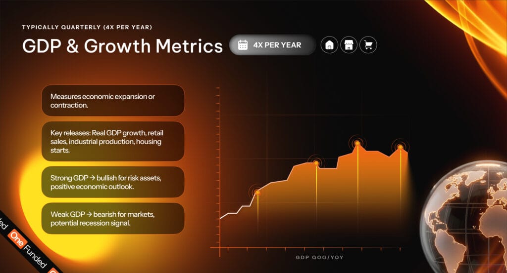 Finally, GDP and other growth measures offer some of the most direct insight as to whether a national economy is expanding or contracting. Almost every advanced economy releases official GDP metrics every three months. In the US, for example, the BEA releases an initial GDP estimate quarterly, with follow-on revisions as more data is collected.