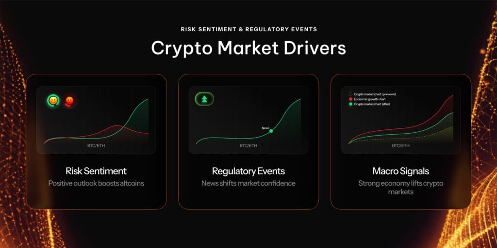 First and foremost, rising investor sentiment based on expectations of a stronger economy can boost all risk assets, including cryptocurrencies. So-called ‘altcoins’ tend to benefit strongly from this dynamic, but even tokens like Bitcoin and Ethereum can be affected too. Moreover, key political events can also drive changes in the crypto market. For example, the election of US President Donald Trump in 2024 was widely seen as contributing to a rally in cryptocurrency prices, following expectations of a more friendly regulatory environment.