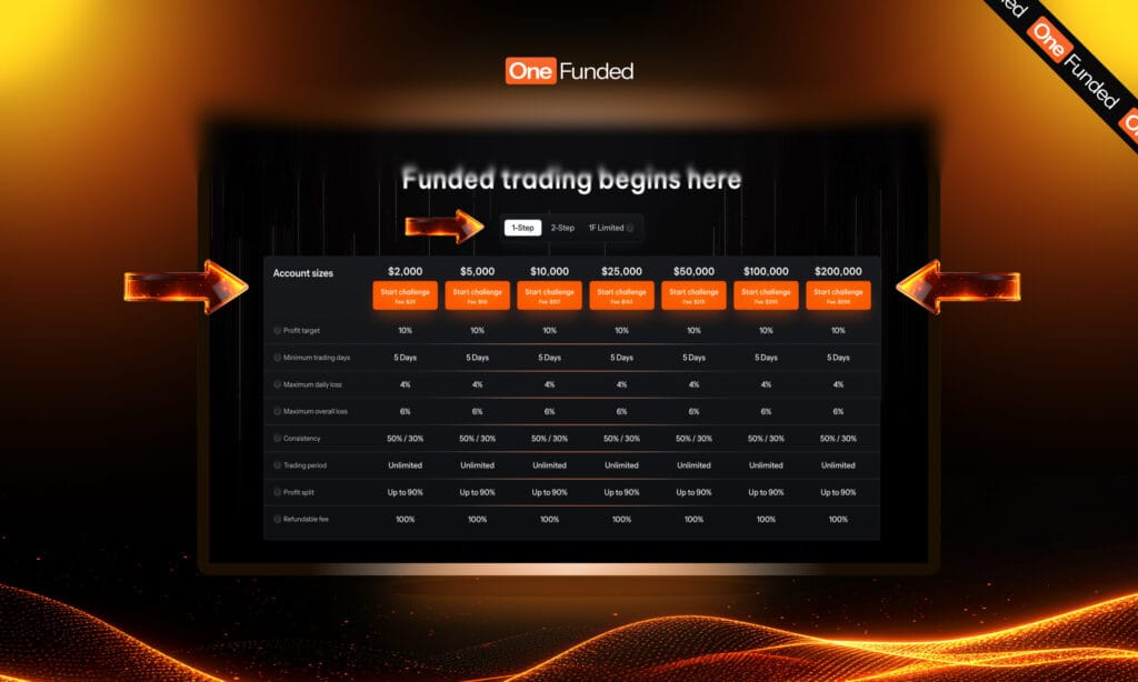 Looking to take your trading journey to the next level? Start your OneFunded challenge today, featuring no time limits and a refundable challenge fee.