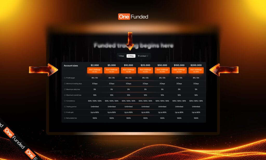 Here is how OneFunded’s standard fee breaks down by challenge type: