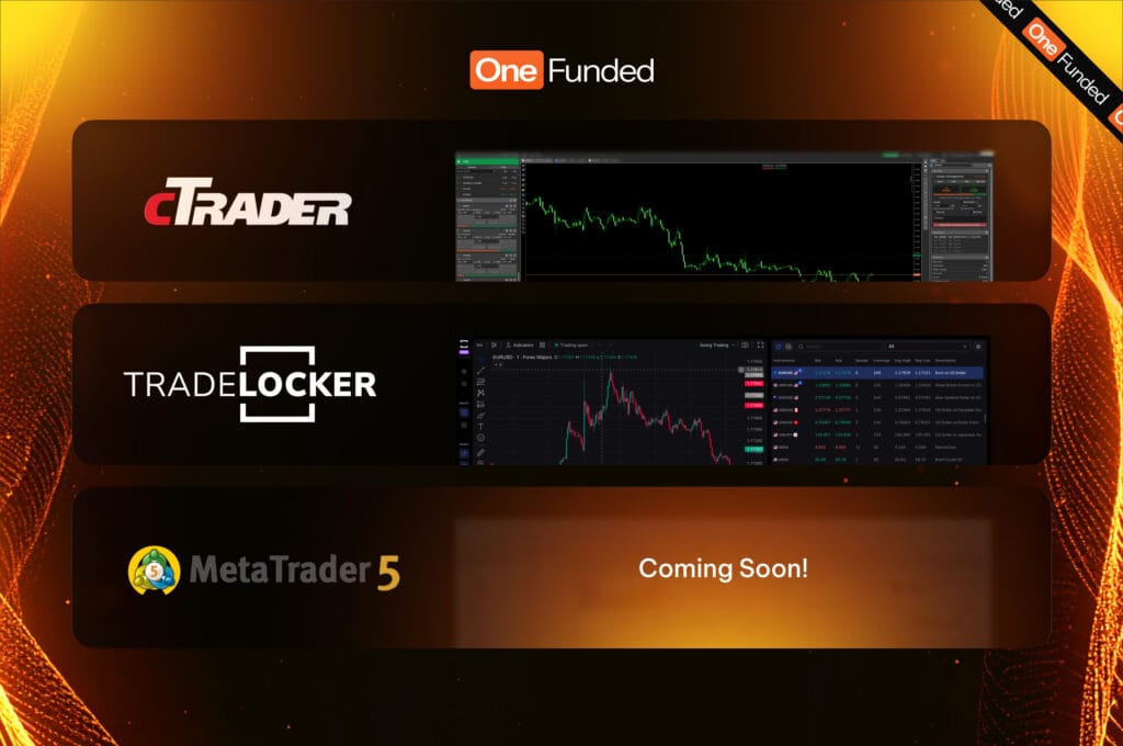 OneFunded currently features access to two separate trading platforms: TradeLocker and cTrader. The former is generally considered a more robust tool, while the latter specializes in offering a lightweight platform.